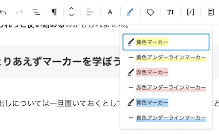 プラグインを使わないでもマーカーやら字の色やらは変えられますし、ブロックの周囲を装飾するスタイルやらボーダーやらは大量の種類が使えるんですね。